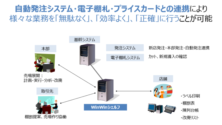 他のシステム(本部初回発注・プライスカード発行など)と連携。